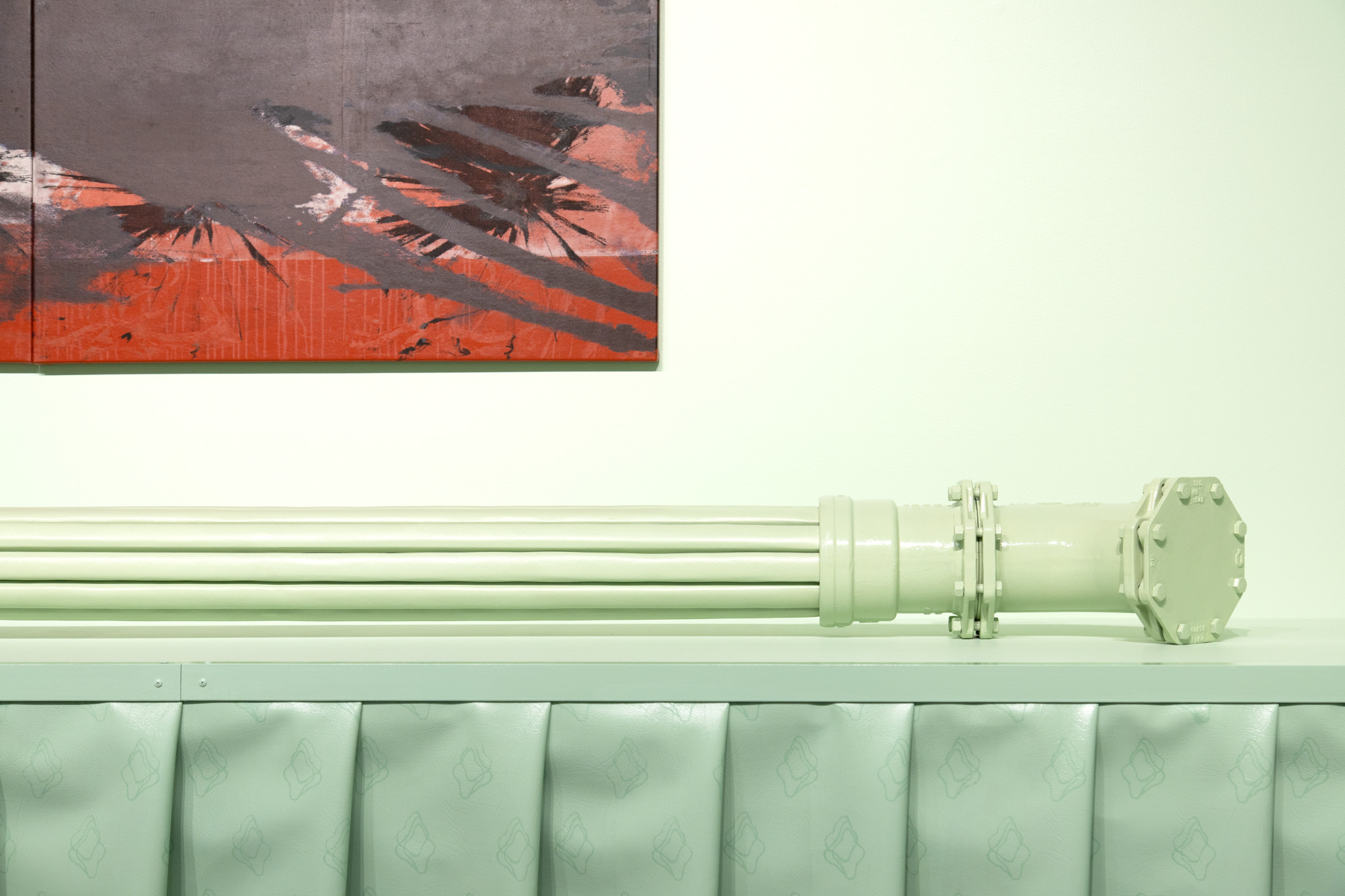 Alexandra Peters’ work operates within a rich and critical dialogue with the history of painting. By embracing industrial materials, manipulating the artist’s hand through reproduction, and asserting a demanding presence in space, often articulated through the unsettling presence of logistical elements like pipes, Peters skilfully composes and interprets the enduring questions of paintings’ relevance in a world saturated with images and industrial processes. Her unsettling surfaces and carefully orchestrated installations invite us to reconsider the medium not just as a visual practice. Instead, her work functions as a critical lens through which to examine our relationship to materiality, space, and the often unseen networks of control that shape our contemporary experience. Alexandra Peters’ first institutional solo exhibition at the Warrnambool Art Gallery offers a compelling glimpse into an expanded painting practice that constantly challenges its own boundaries and our expectations of its decorum.