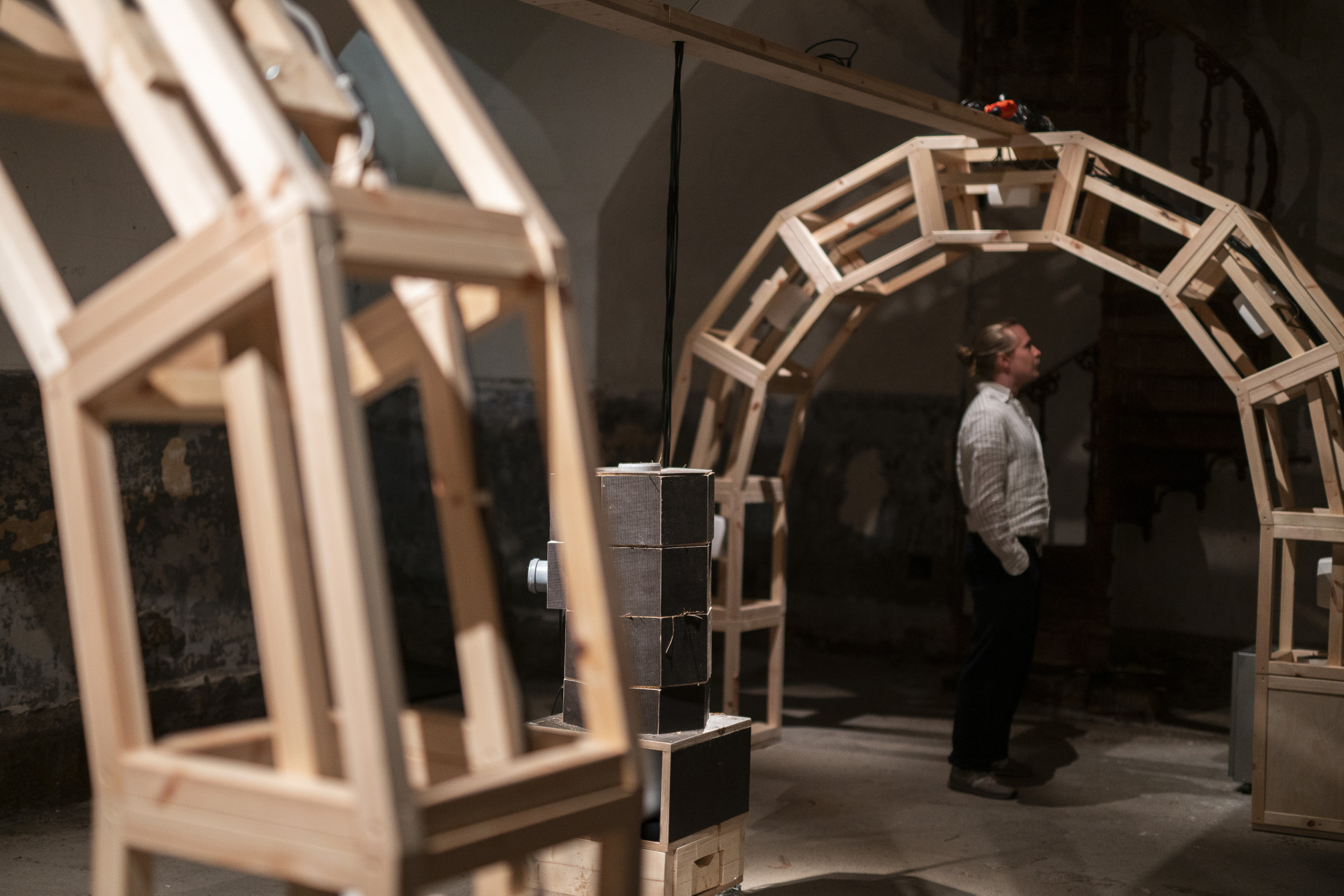 Soil and varnish on canvas, paperclay, pigment, steel mesh, ply-wood