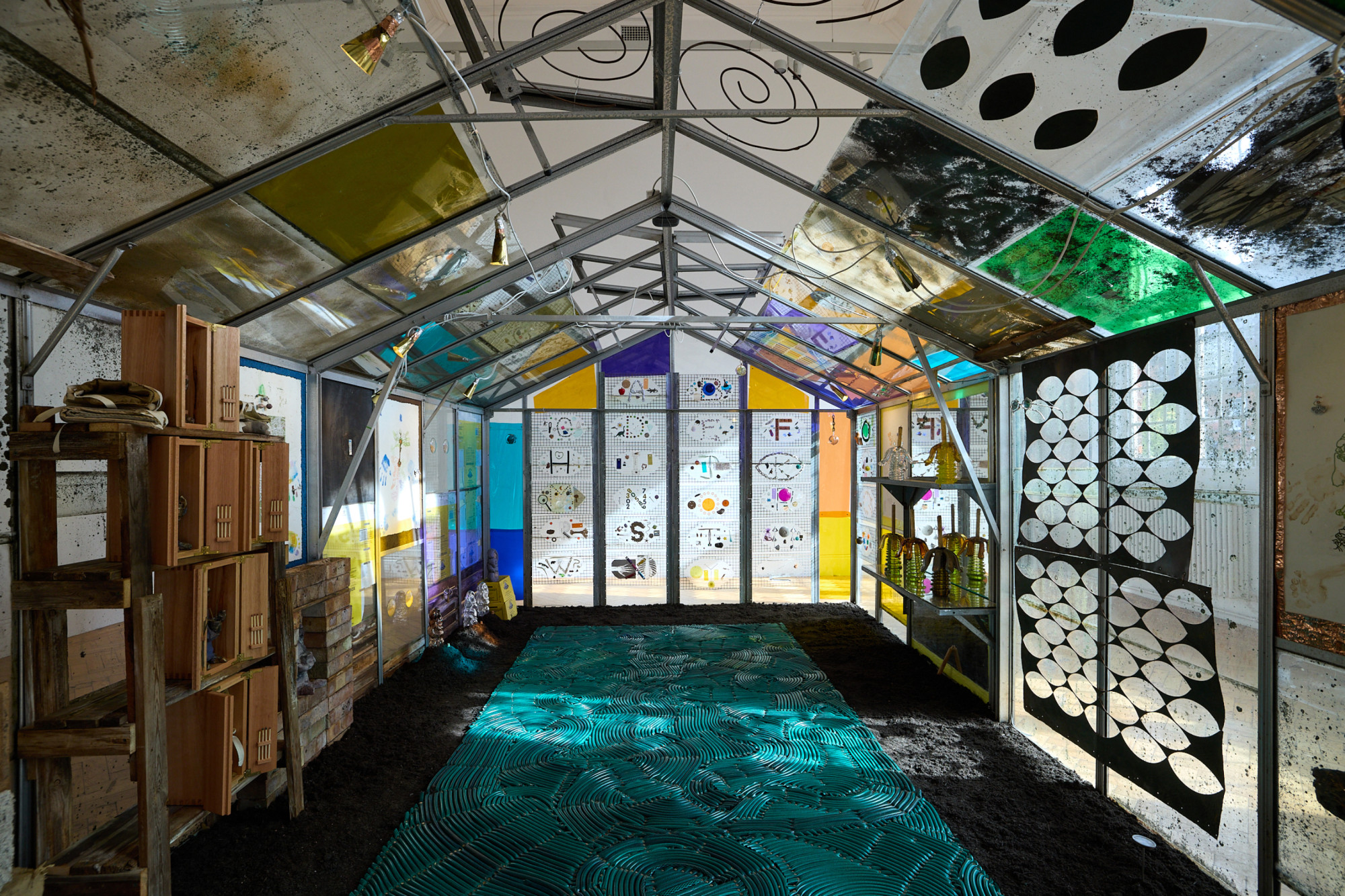 Installation view: Tamara Henderson, Green in the Grooves, Camden Art Centre, UK