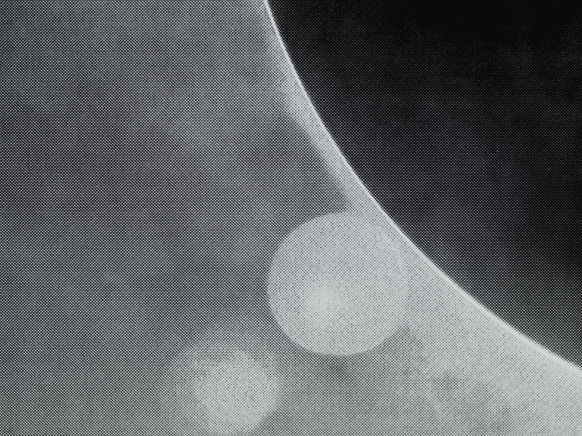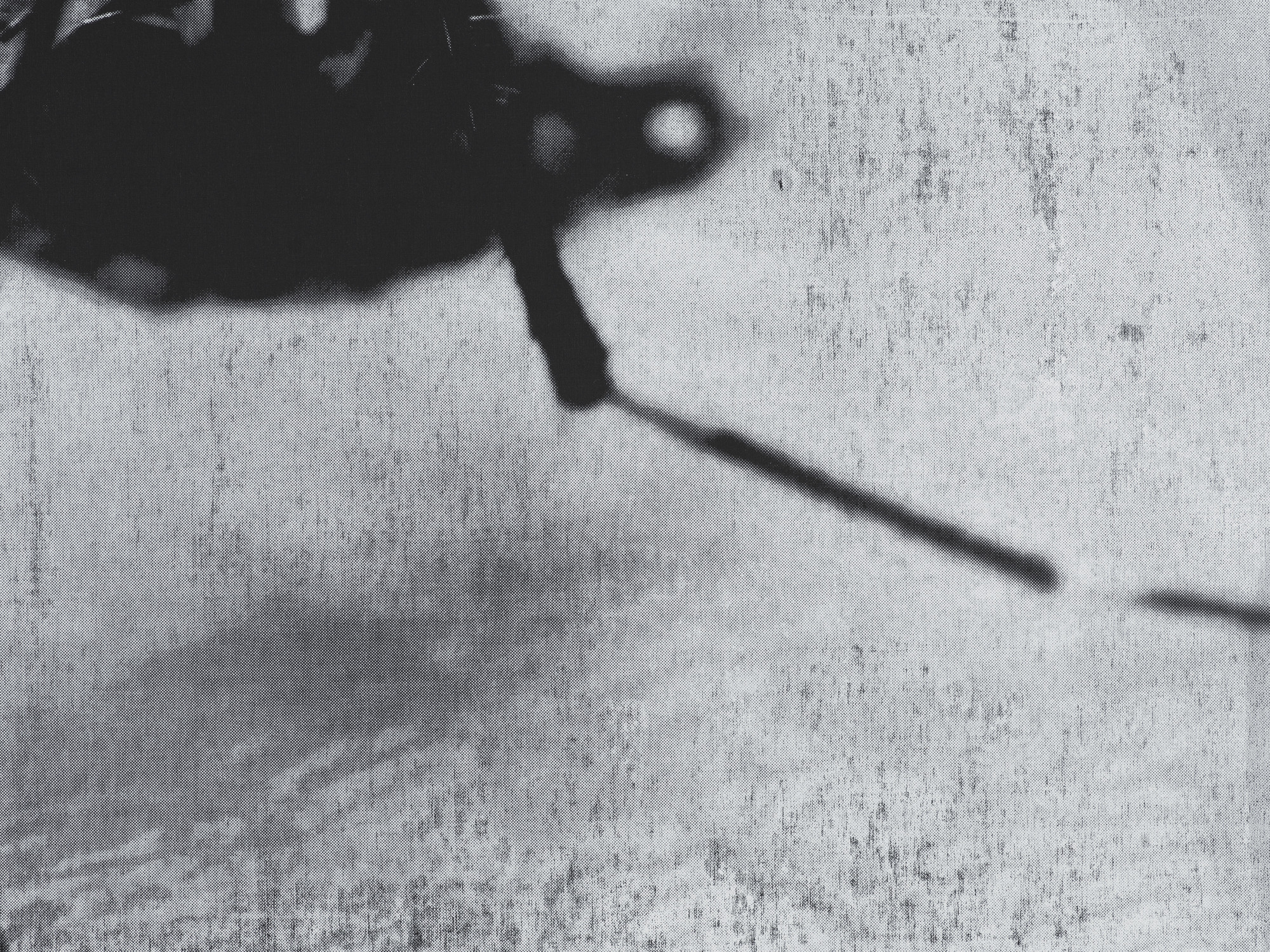 The title for the exhibition is a quote by the artist given in an interview in 2022*. By extension, the titles for each painting in the exhibition are the jpg tags of the original image files with the word ‘variation’ added. All the works are white on black, this reversing of positive/negative references earlier works by the artist. The silkscreen process is alchemical, physical, open to mistakes, irregularities, and variations. This experimental approach is analogous to the DESASTRES performance where sound is improvised, and the images randomised, generating an unknown outcome. Within the exhibition, monochromatic black on black paintings make a connection back to the performance whereby a cut to silence cuts the screen to black.